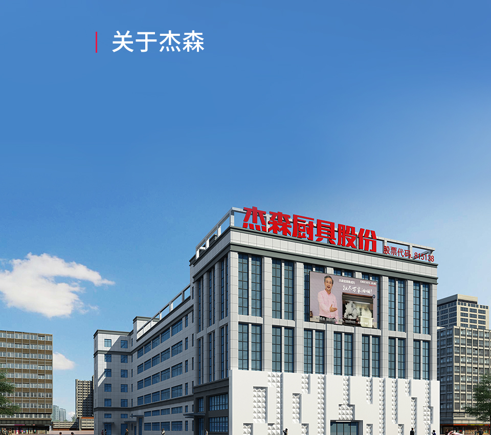 浙江杰森廚具股份有限公司成立于2000年,是一家集研發、生產、銷售于一體的現代化廚電企業。座落于中國——嵊州,公司四大產業鏈布局,現擁有總工廠及子工廠,占地面積約67000平方米,其中廚電產業區年產能高達40萬臺。全國1000多家銷售網點,遍布全國各省市自治區。